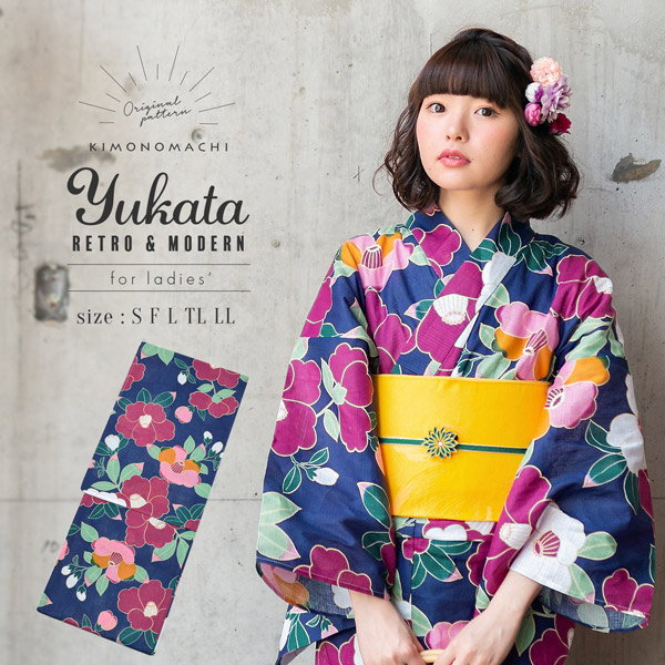 浴衣 レディース ふりふ 椿オーバジーン ふりふオリジナル 日本製 ゆかた つばき 椿 花柄 和柄 レトロ モダン かわいい 可愛い 大人 お洒落 華やか 0651 3 ふりふ 通販 Yahoo ショッピング